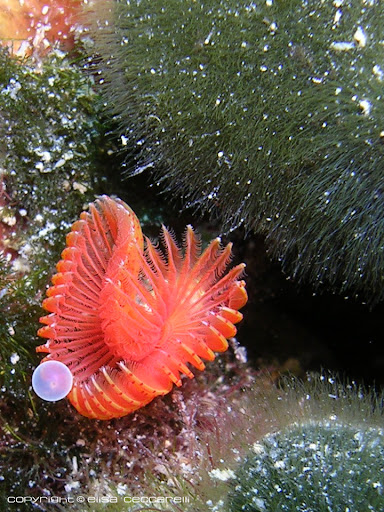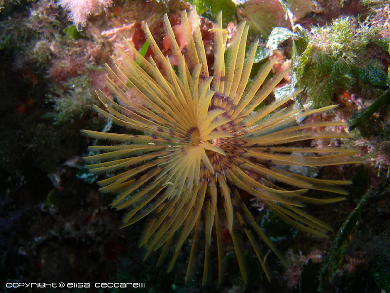 La corona branchiale è composta da tentacoli filiformi, ricoperti da ciglia e di ghiandole mucose disposte a spirale, la cui funzione è di “invischiare” le particelle alimentari; infatti i policheti, si nutrono per filtrazione, catturando plancton e particelle organiche in sospensione. La corona branchiale è variopinta: le tinte variano fra giallo-brunastro, viola, giallo e bianco, ma anche rosa o arancio.